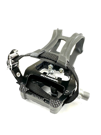 Looking for the ultimate in pedal versatility? Schwinn delivers. Effortlessly switch between Shimano SPD cleats or simply slip in your tennis or running shoes within the pedal's cage, complete with a tension strap. This unique dual adaptability guarantees optimal performance for every rider.